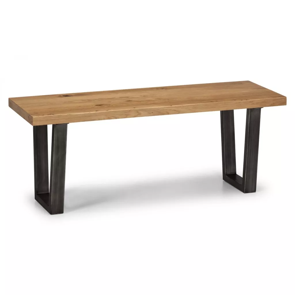 Crafted from solid oak, this bench showcases a rustic finish that accentuates the captivating natural wood grain. The Brooklyn Bench exudes a vintage charm with its industrial trapeze-style metal legs. With generous seating for up to 2 people, this spacious bench is an ideal addition to a variety of modern decor styles.