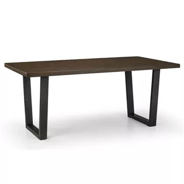 Constructed from solid oak, this dining table showcases a rustic finish that accentuates the rich, dark oak wood grain. The Brooklyn Dining Table adds a vintage touch with its industrial trapeze-style metal legs. With generous space, this expansive table accommodates up to 6 people, making it an ideal fit for a variety of modern decor styles.