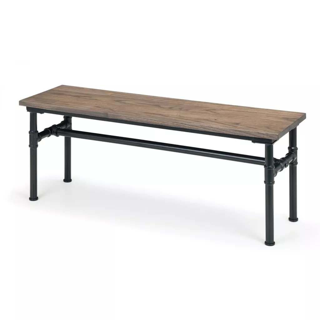 Designed for seating up to 2 people, the Carnegie Bench presents an industrial design suitable for your kitchen, dining room, or other interior spaces. Crafted from solid Elm wood in a mocha finish, it makes a distinctive statement, showcasing the beautiful wood grain. The bench is completed with powder-coated steel legs in a pipework style, creating a seamless match with the Carnegie Dining Table for a cohesive and stylish ensemble.