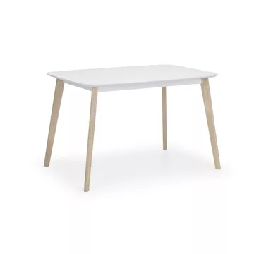 Embodying a timeless retro design reminiscent of the 1950s, the Casa dining table features a resilient white lacquered top and limed oak effect legs. Crafted from solid Malaysian hardwood and MDF, it ensures enduring durability for long-lasting use.