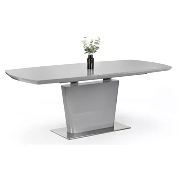 The Como extending dining table boasts a sleek, contemporary design with a crisp grey high gloss finish and a robust chrome pedestal base. Its generous layout incorporates a user-friendly butterfly extension system, easily stored within the table when not in use, providing comfortable seating for 6 people. This eye-catching dining table is set to make a lasting style statement in any dining room. Achieve the ultimate glamorous look by pairing it with the Como cantilever dining chairs.