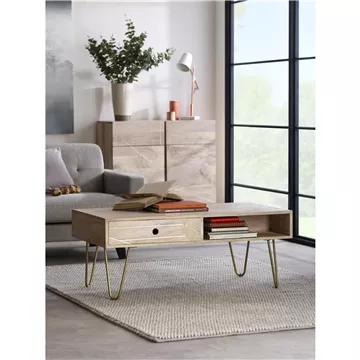 Light Gold Rectangular Coffee Table with Drawer