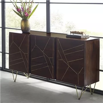 This modern contemporary style furniture combining metal inlay on solid wood creating an abstract style, is taking the furniture making to a whole new level. The angled legs made of metal adds to the retro vintage look.